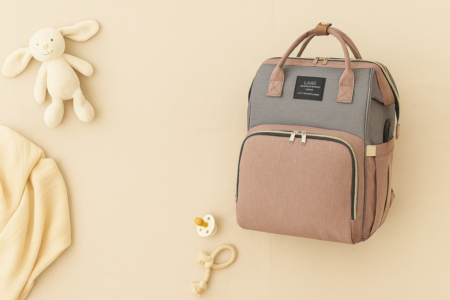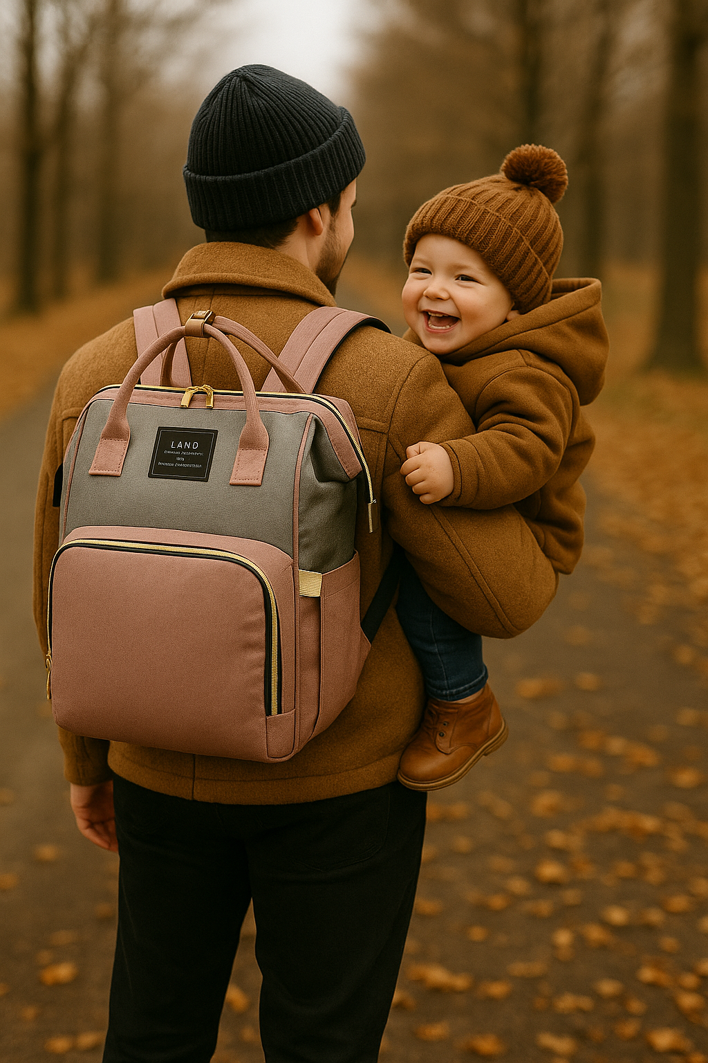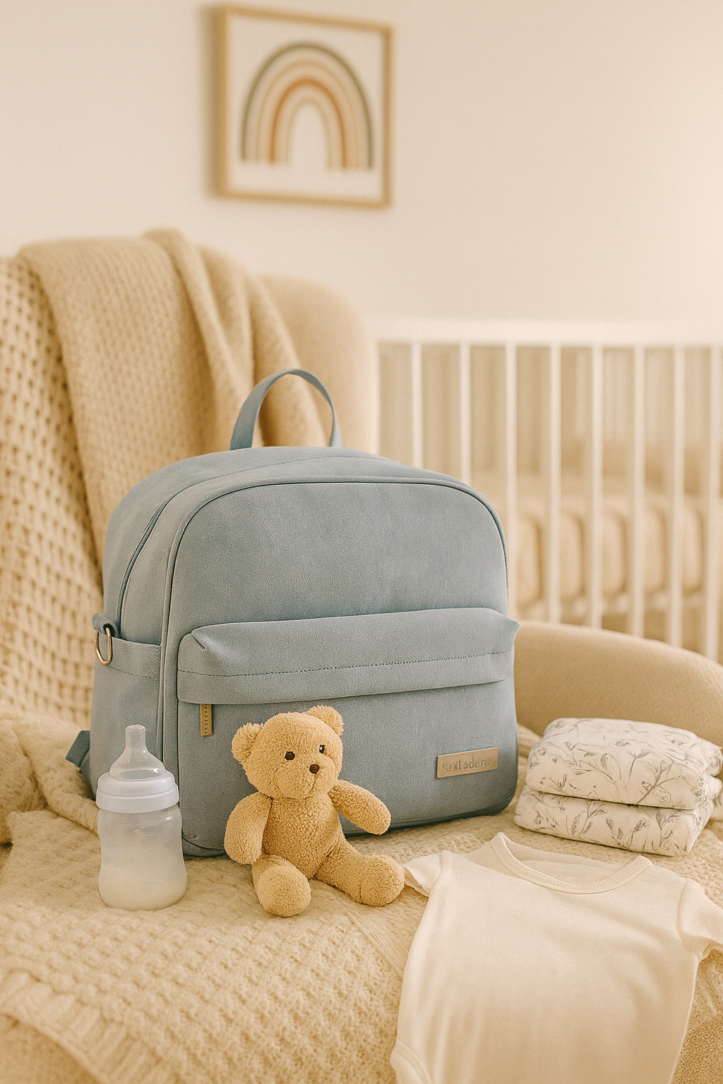 Le sac à langer devient un compagnon du quotidien, toujours prêt à accueillir les affaires du bébé avec ordre et simplicité.